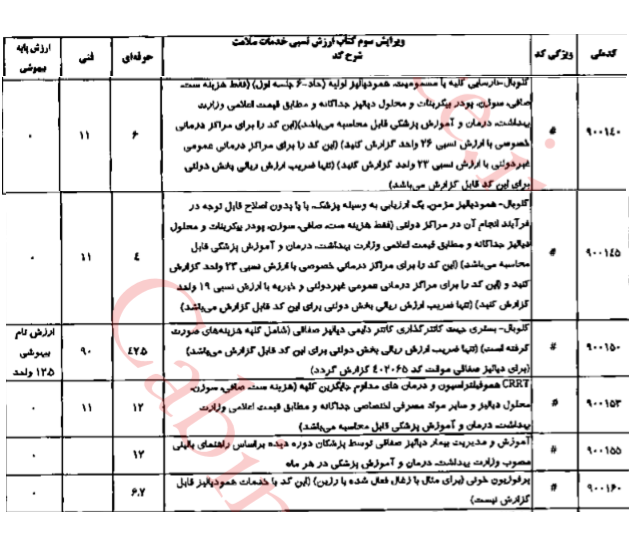 1- تعرفه جدید همودیالیز و دیالیز صفاقی