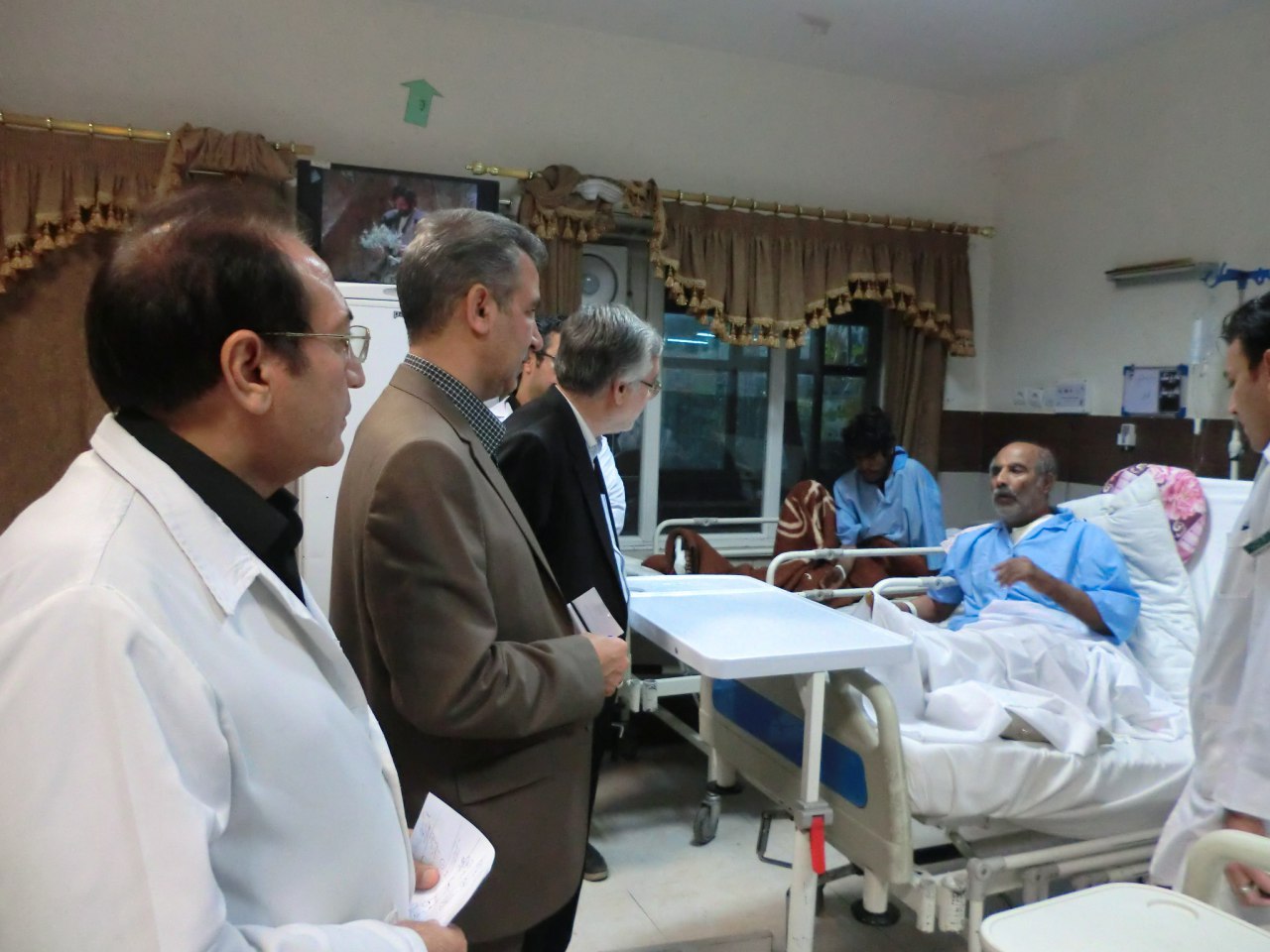 این بازدید بیش از دو ساعت به طول انجامید که در نهایت جناب آقای دکتر دارابی به همراه جناب آقای دکتر خیامی در ساعت 23:15 دقیقه بیمارستان را ترک نمودند.